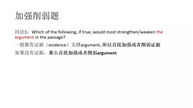 大家做这种题目首先要找到argument背后的支持证据,如果需要加强/削弱argument,大家只需要将evidence加强/削弱就可以了。