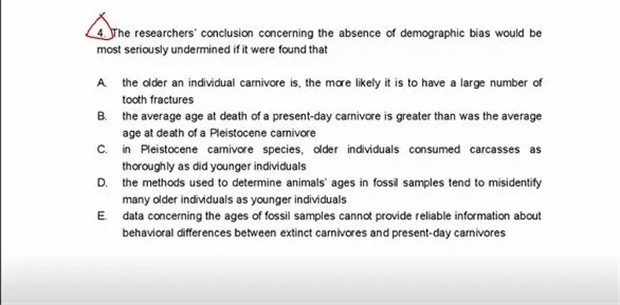 这是一道削弱题,如果想要削弱结论,我们要找到的选项是削弱推出结论的正确证据。D选项的内容是,辨别动物的方法错误地把老的个体当成年轻的个体。这是对一个被否定原因的一个再否定,也就是正确的证据。你明白了吗?