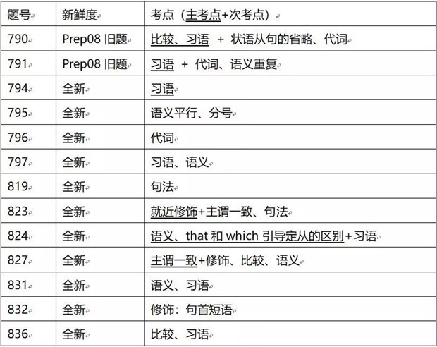 本次OG20语法部分更新新题共13道,其中2道为曾经在prep08中出现过的题目,11道为全新首秀题,总体来说,新题的新鲜度还是很高的。