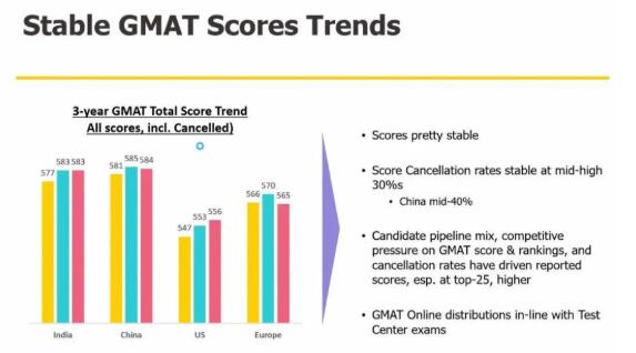 在GMAT官方公布的数据中可以发现,中国GMAT考生成绩取消率平均为40%,高于整体数据的30%,说明有将近一半的学生在第一次的考试中选择了取消成绩