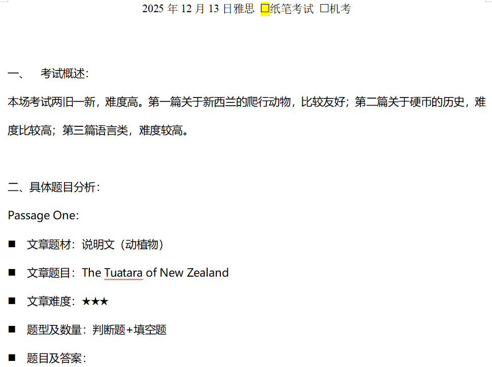 2025年12月13日雅思考试已经结束, 那这次考试阅读都考了哪些内容呢?本文为大家整理了2025年12月13日雅思考试题阅读回忆及答案,希望对大家的备考有所帮助。