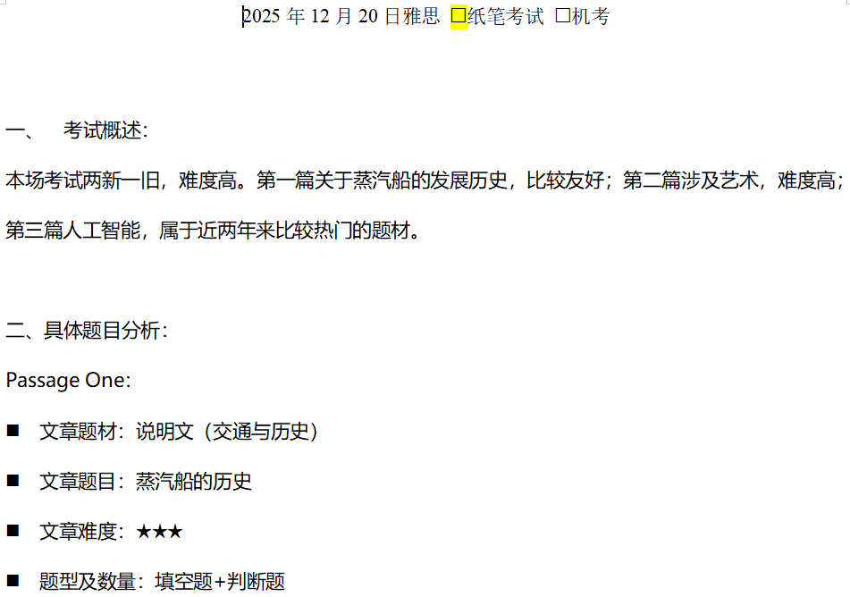 2025年12月20日雅思考试已经结束, 那这次考试阅读都考了哪些内容呢?本文为大家整理了2025年12月20日雅思考试题阅读回忆及答案,希望对大家的备考有所帮助。