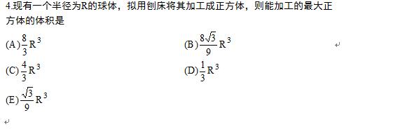 一、问题求解:第1~15小题,每小题3分,共45分。下列每题给出的A、B、C、D、E五个选项中,只有一项是符合要求的。请在答题卡上将所选项的字母涂黑。