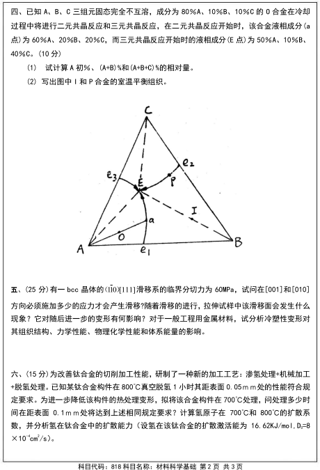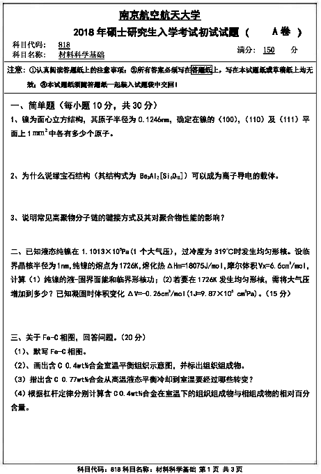 以上就是为考研人分享的:南京航空航天大学2018年818材料科学基础初试考研真题,希望能为大家考研复习带来帮助,预祝大家考研成功。