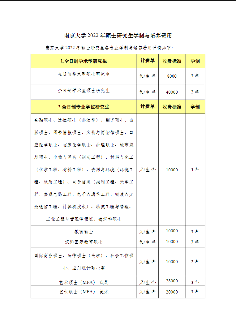 2022南京大学全日制学术型研究生学费有8000元/年、40000元/年等不同标准;全日制专业学位研究生学费有10000元/年、18000元 /年、20000元/年等不同标准;以下是各专业具体收费标准,供大家参考: