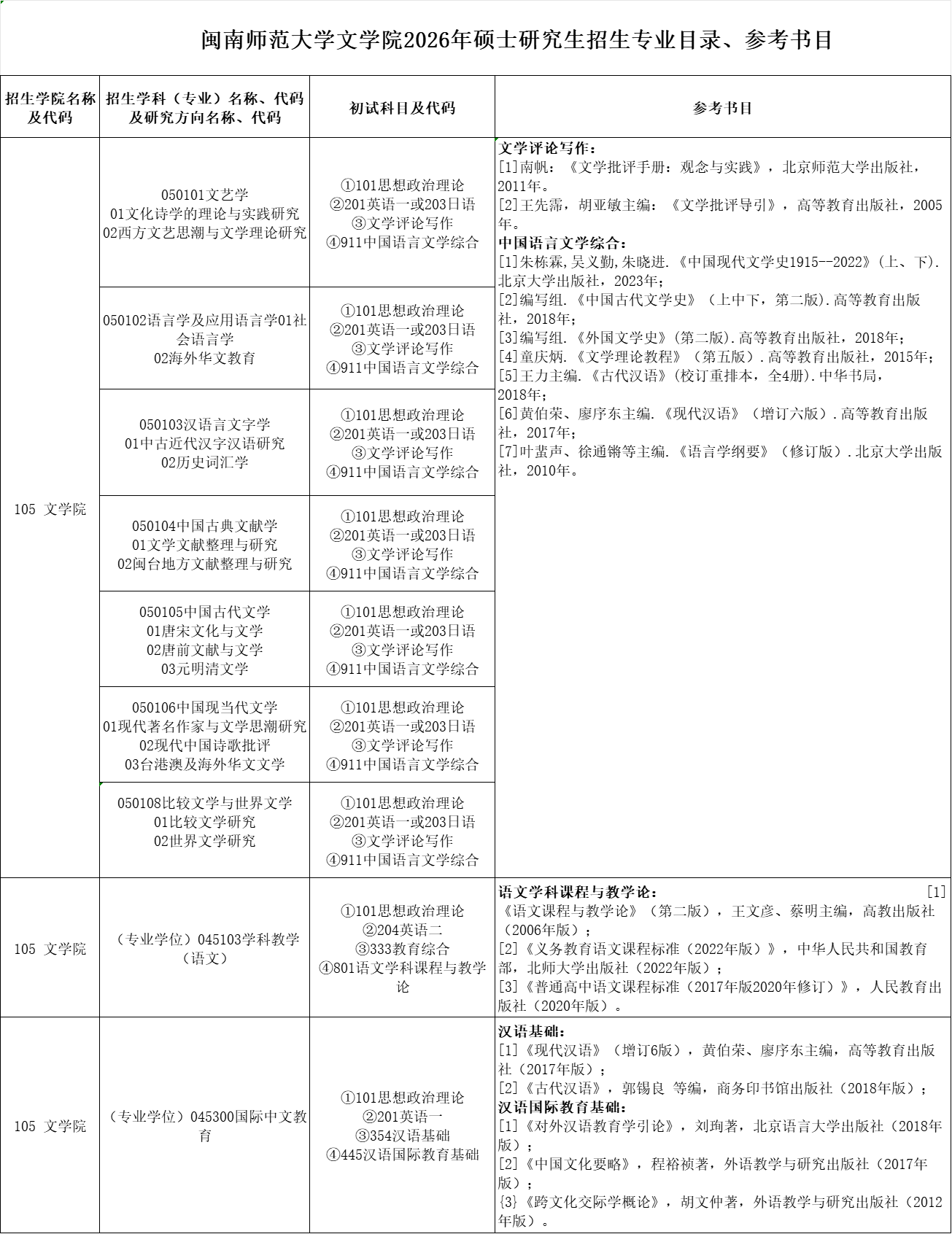 闽南师范大学文学院2026年硕士研究生招生专业目录