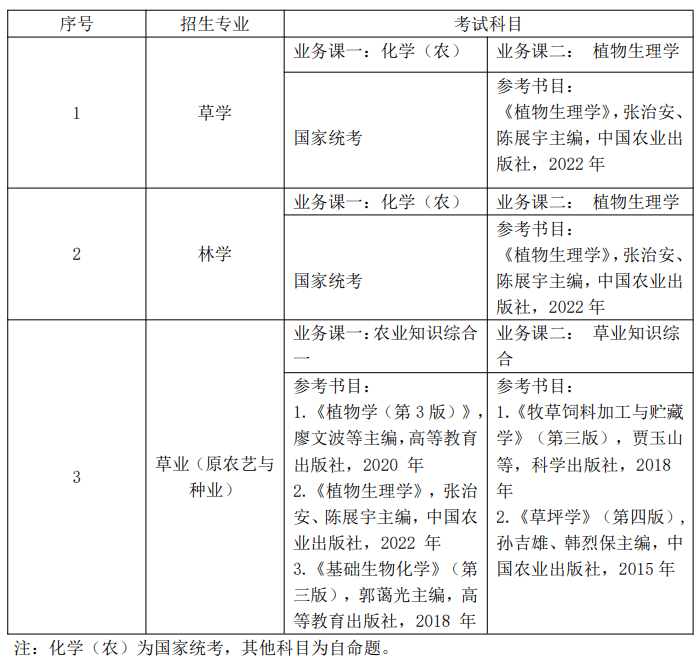 吉林农业大学林学与草学学院2026考研初试科目调整表