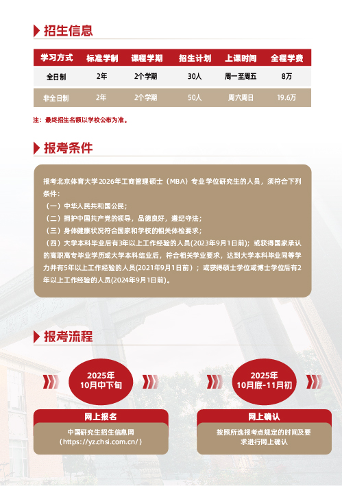 2026年北京体育大学工商管理硕士(MBA)招生说明