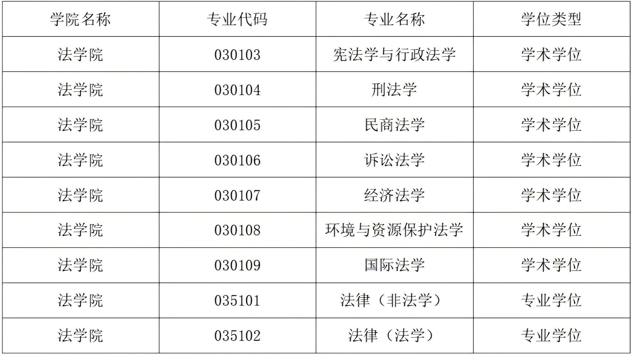 法学院现有航运管理与法律专业二级学科博士学位授权点,以及法学一级学科硕士学位授权点下设有国际法学专业、民商法学专业、经济法学专业、刑法学专业、诉讼法学专业、环境与资源保护法学专业、宪法学与行政法学专业,以及法律硕士专业。
