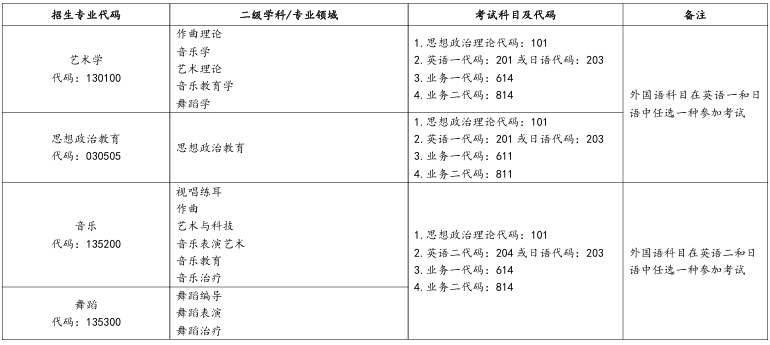 我校招收艺术学和马克思主义理论(思想政治教育)学科全日制学术学位硕士研究生,音乐和舞蹈专业学位类别全日制、非全日制专业学位硕士研究生,旨