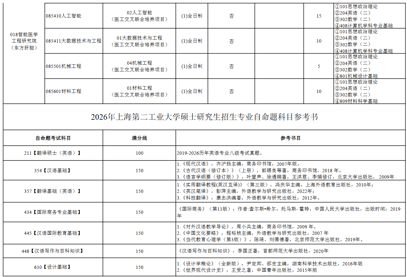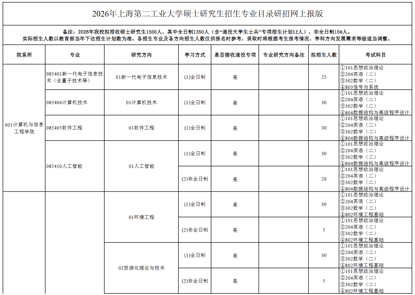 上海第二工业大学2026年研究生招生专业目录(第二版)