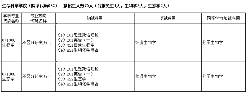 青海师范大学生命科学学院2026年研究生招生专业目录