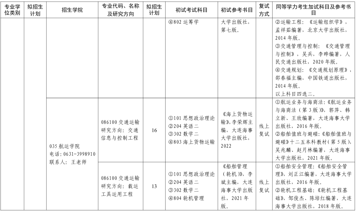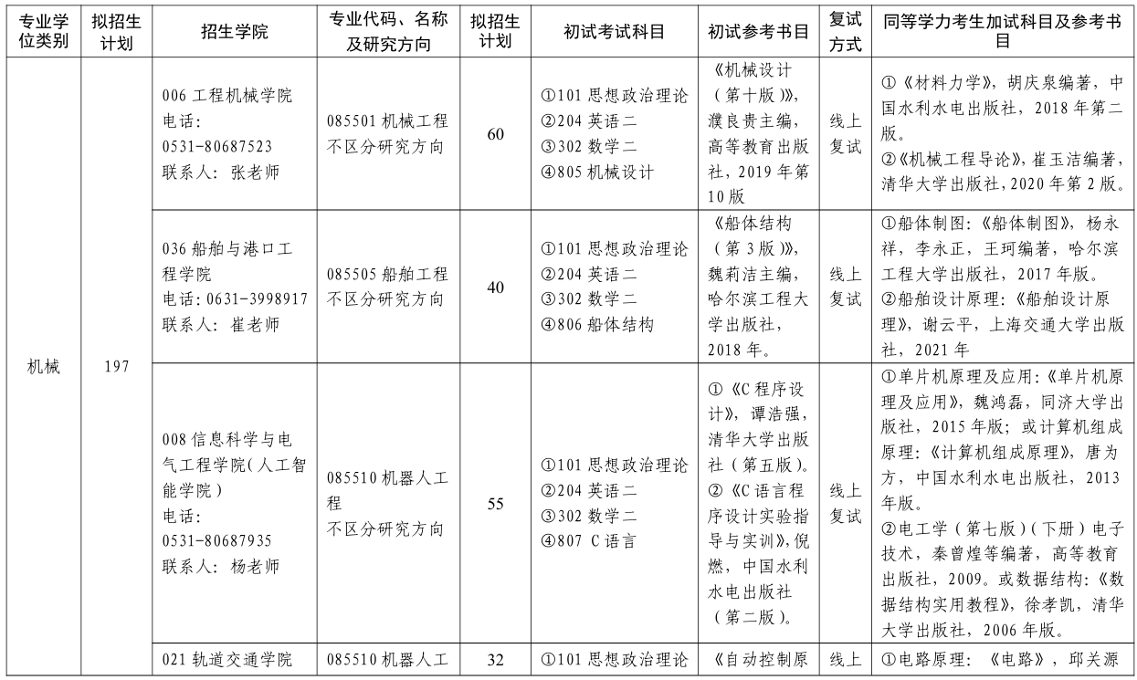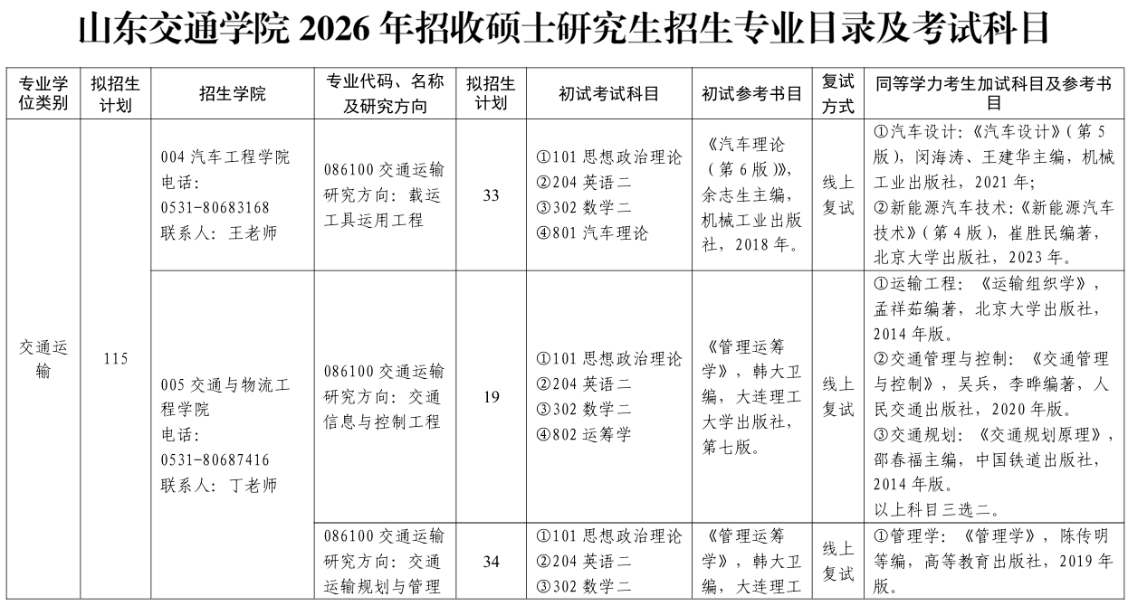 山东交通学院2026年研究生招生专业目录