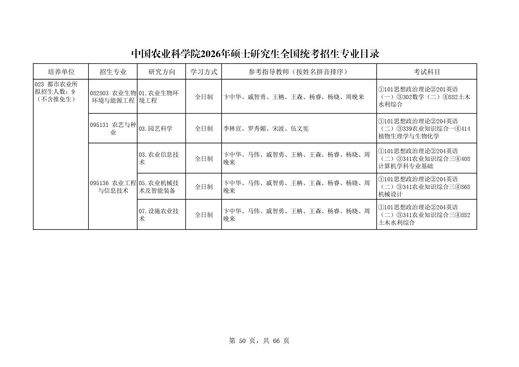 中国农业科学院都市农业所2026年研究生招生专业目录