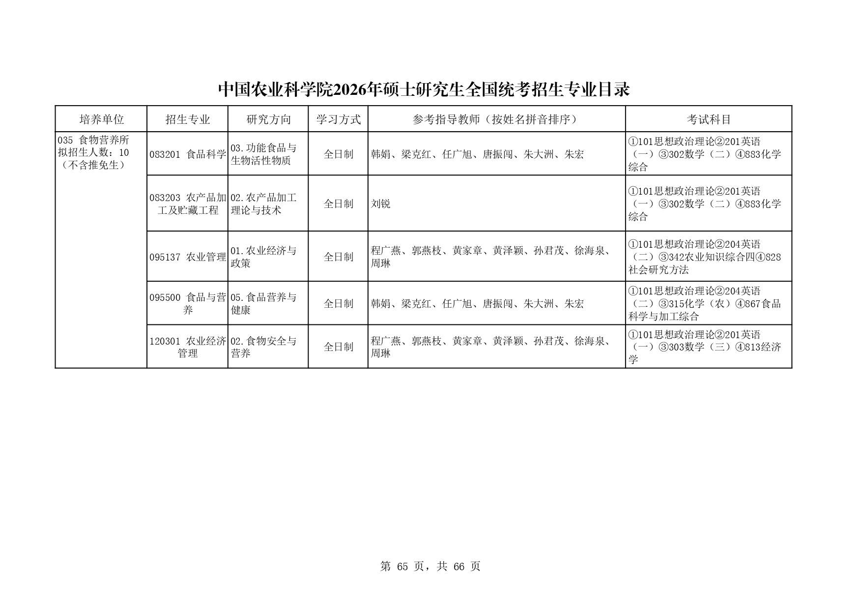中国农业科学院食物营养所2026年研究生招生专业目录