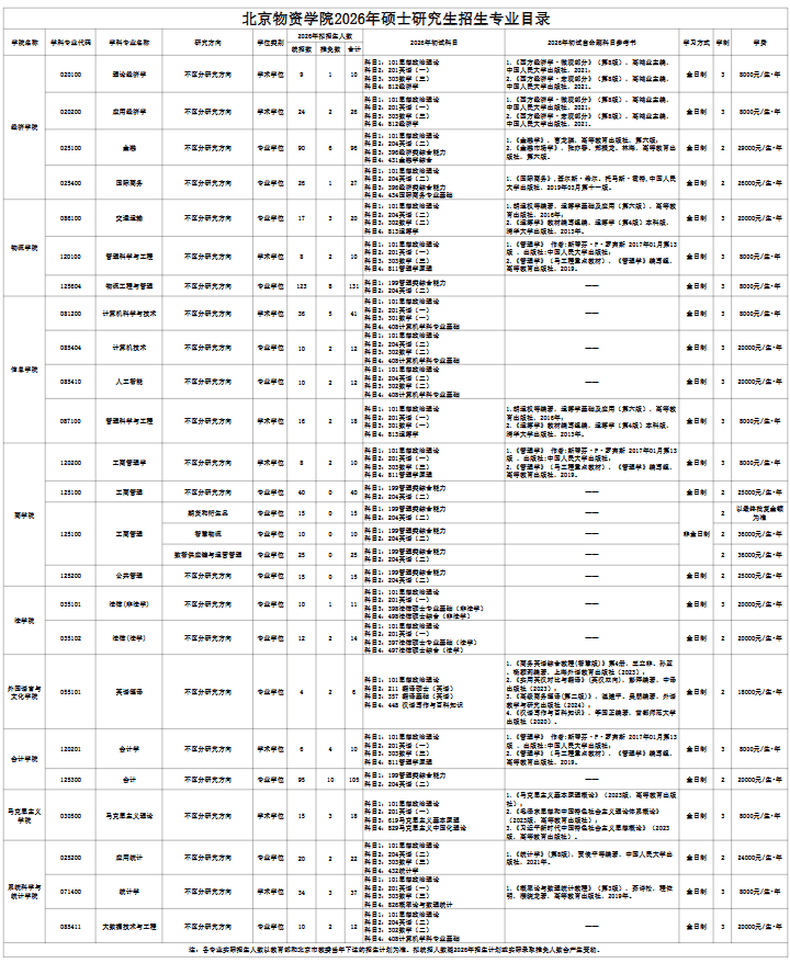 北京物资学院2026年研究生招生专业目录