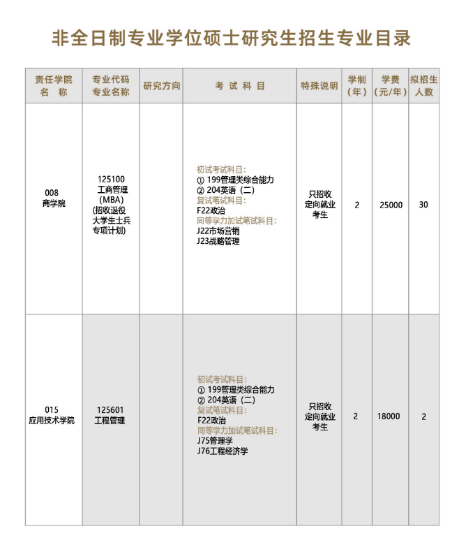 沈阳大学2026年研究生招生专业目录(非全日制)