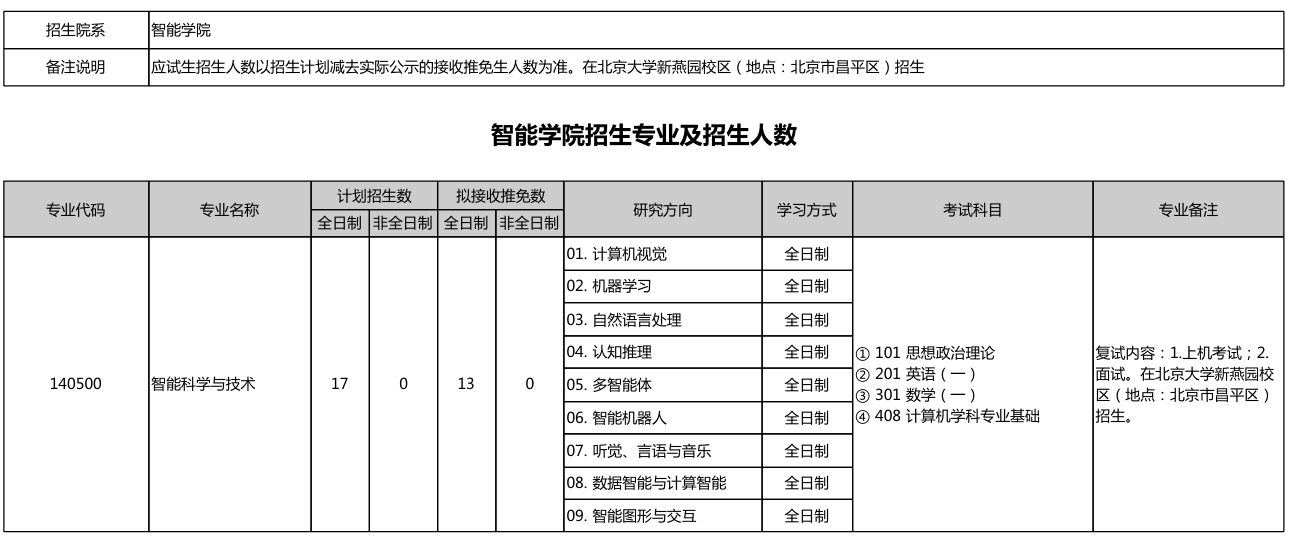 北京大学智能学院2026年研究生招生专业目录