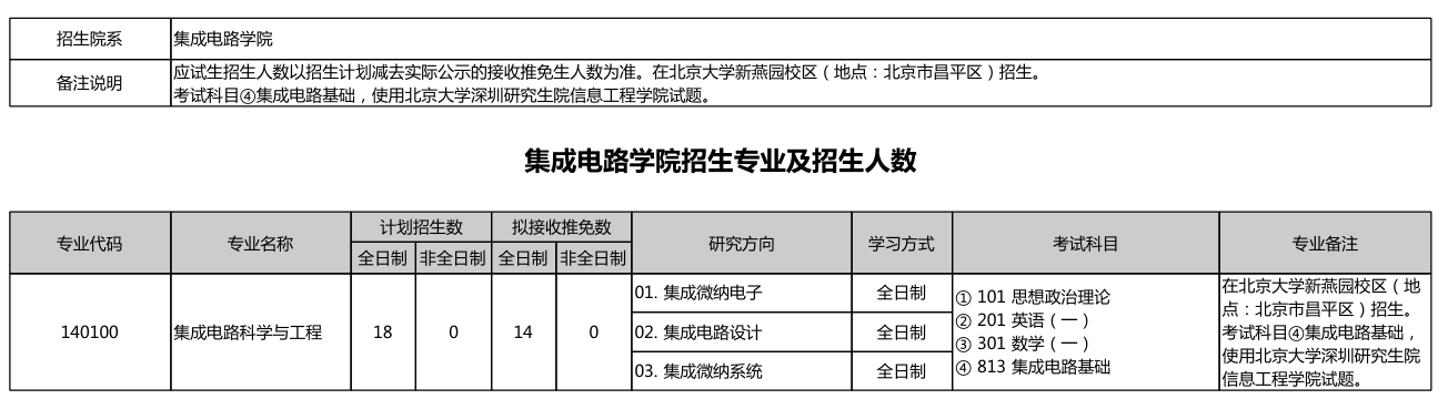 北京大学集成电路学院2026年研究生招生专业目录