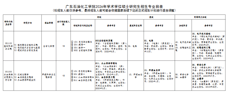 广东石油化工学院2026年研究生招生专业目录