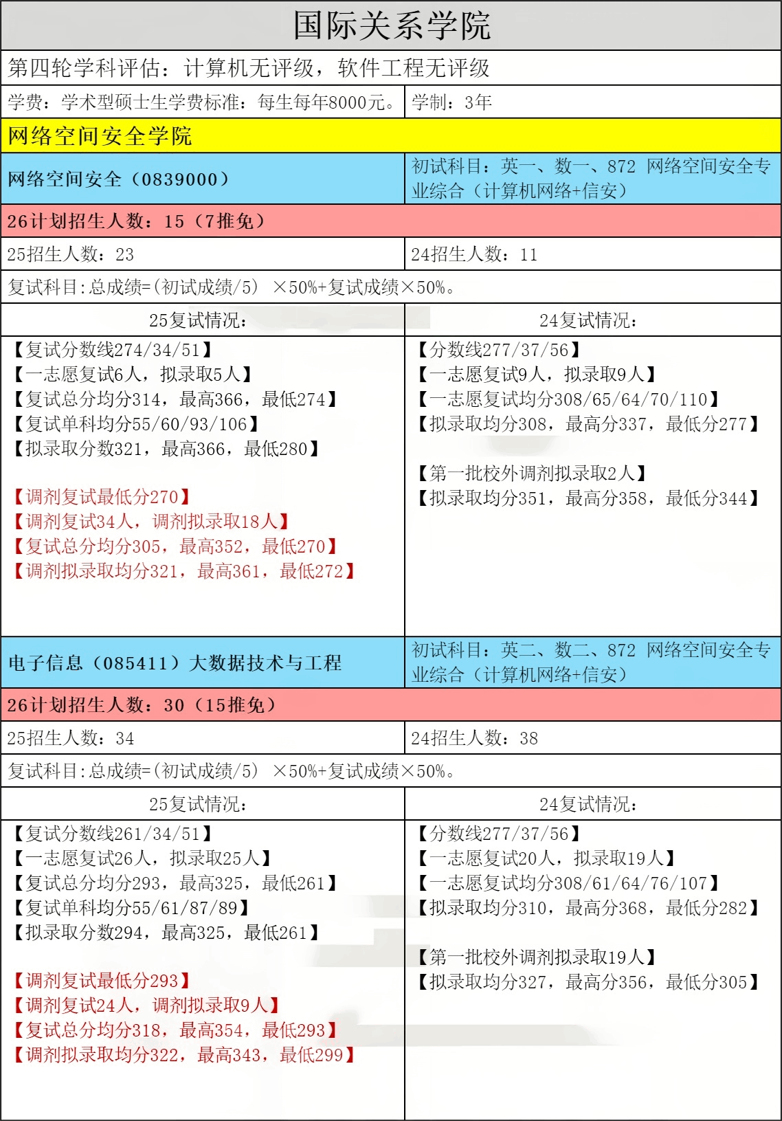 国际关系学院是一所与共和国同龄的全国重点大学,在国内外享有较高声誉。学校注重政治建校,以服务国家发展和社会需求为核心,坚持“要求高、专而精”的办学理念,不断创新厚基础、宽口径的人才培养模式;以培养具有国际视野、人文精神、创新能力、德智体美劳全面发展的复合型卓越人才为己任,建设在国家安全、国际问题等领域特色突出的高水平大学。学校长期坚持小班教学,坚持精细化培养。学校实行学分制和导师制,积极开展教育教学改革,为学生提供专业理论与专业实践相结合、主修与辅修互为支撑的课程体系,不断提升学生自主学习能力和成效。学校投入专项经费,设有大学生学术支持计划,大学生创新创业等项目。学校研究生教育培养涵盖法学、经济学、文学、工学和交叉学科门类,设有政治学一级学科博士点,并长期与中国现代国际关系研究院共同培养国际关系专业博士生。设有国家安全学、政治学、理论经济学、外国语言文学、网络空间安全等5个一级学科硕士授权点,翻译、法律、警务、大数据技术与工程4个专业学位授权点,学科方向和专业领域达到27个。