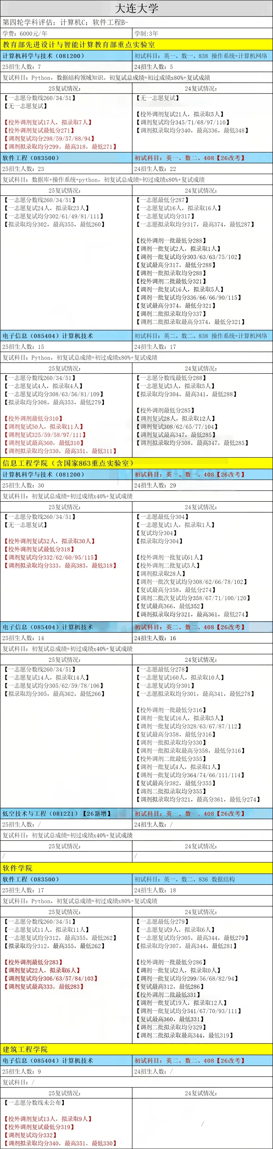 大连大学位于北方浪漫之都——辽宁省大连市,是一所拥有法学、经济、教育、文学、艺术、历史、理学、工学、医学、管理10大学科门类、主要办学指标和综合办学实力进入辽宁省高校前列、省内学科门类最齐全的综合类公办本科高校。入选教育部卓越教师培养计划,是辽宁省“一流学科”建设高校、国家大学生文化素质教育基地、首批辽宁省深化创新创业改革示范高校、首批CDIO工程教育联盟成员单位、国家技术转移示范机构和国家知识产权试点单位。学校获批辽宁省高价值专利组合培育中心,是全国首个向国家知识产权局申请专利开放许可的单位。计算机C,软件工程B-