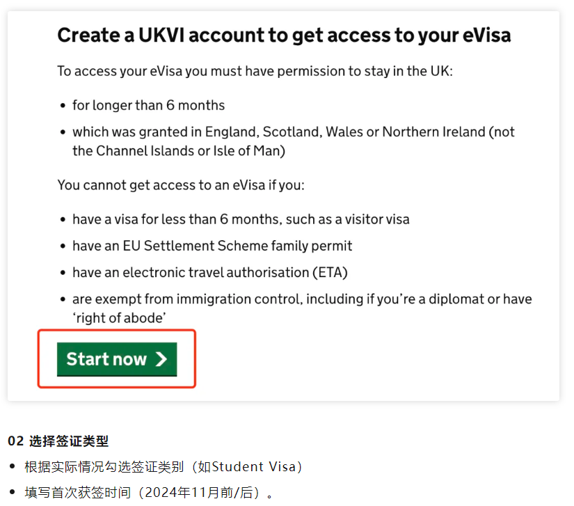 登录 https://www.gov.uk/get-access-evisa,点击“Start now”。