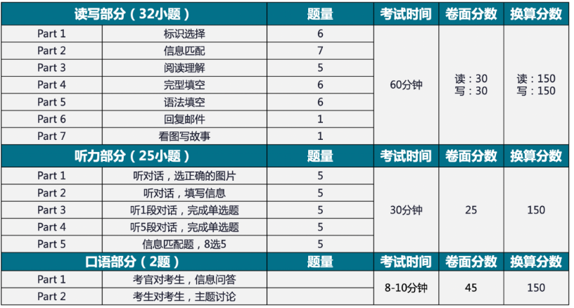 • 写作:要求撰写简短的邮件、便签或故事。邮件和便签注重格式规范与内容清晰,故事写作则关注情节的完整性和语法的正确性。