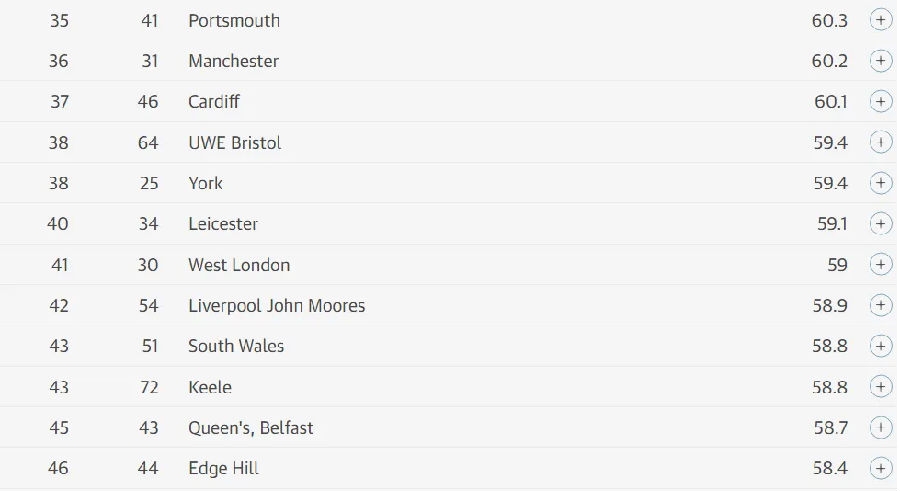和Times、CUG并称英国本土三大排名,但卫报排名是一个特别的存在。它不拼科研产出,也不管诺奖多少。它关注的是——学生能不能学到东西,能不能学得开心,能不能毕业后找到好工作。