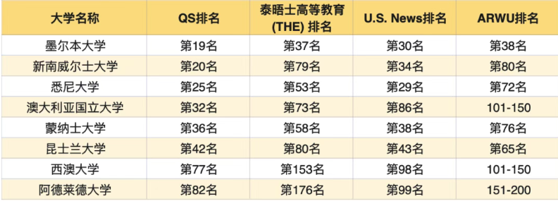所以哪怕你要用其他排名说话,澳洲也是不带怕的~毕竟现在澳洲大学的排名就摆在那里。如果你想参加国内考公、选调、工作,一些地区和公司的参考就是按照综合排名从高到低来作为门槛,选择一个排名稍高的确实会选择机会更多一些~