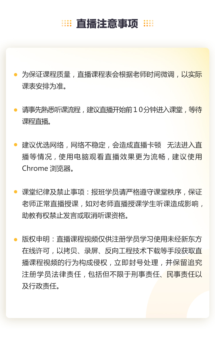 直播课程(以直播为主):购买后在第二节正式直播开课前允许申请退换课(注:正课内容不含开学典礼、刷题攻略、开班仪式的直播)。但若直播课总次数在2次(含)以内,已直播后不支持退换。
