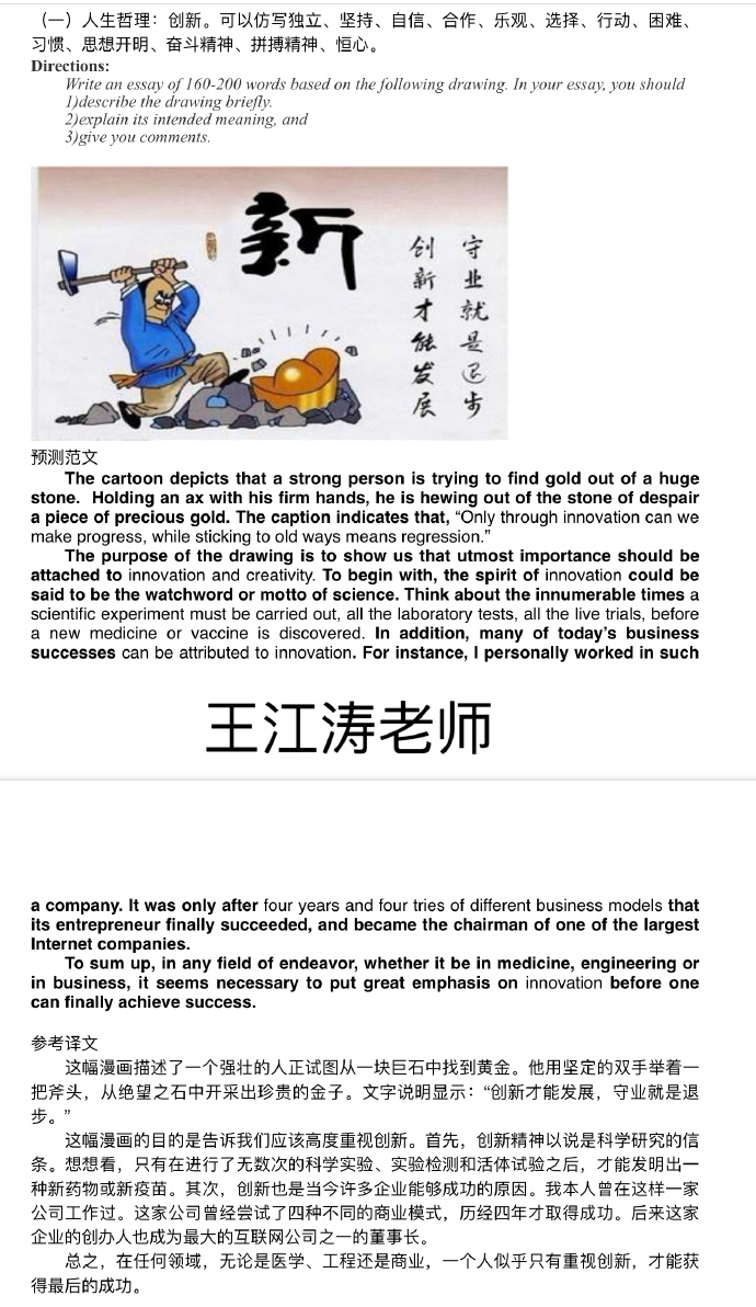 今天是23日,下午2024考研英语一将会开考,小编为大家带来道长王江涛老师的《2024考研英语一大作文押题》,希望大家在前再过一遍,争取考个好成绩。