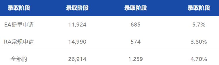在这26,914名申请人中,最终录取人数为1,259人,整体录取率为4.7%。