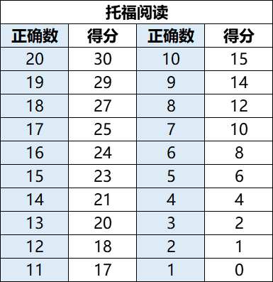 目前ETS官方还没有给出升级后的阅读算分表,但是因为整体题目减少,所以每道题目的平均分值占比更高了,同时容错率会变低,同学们拿到阅读满分的难度也会有所增加。