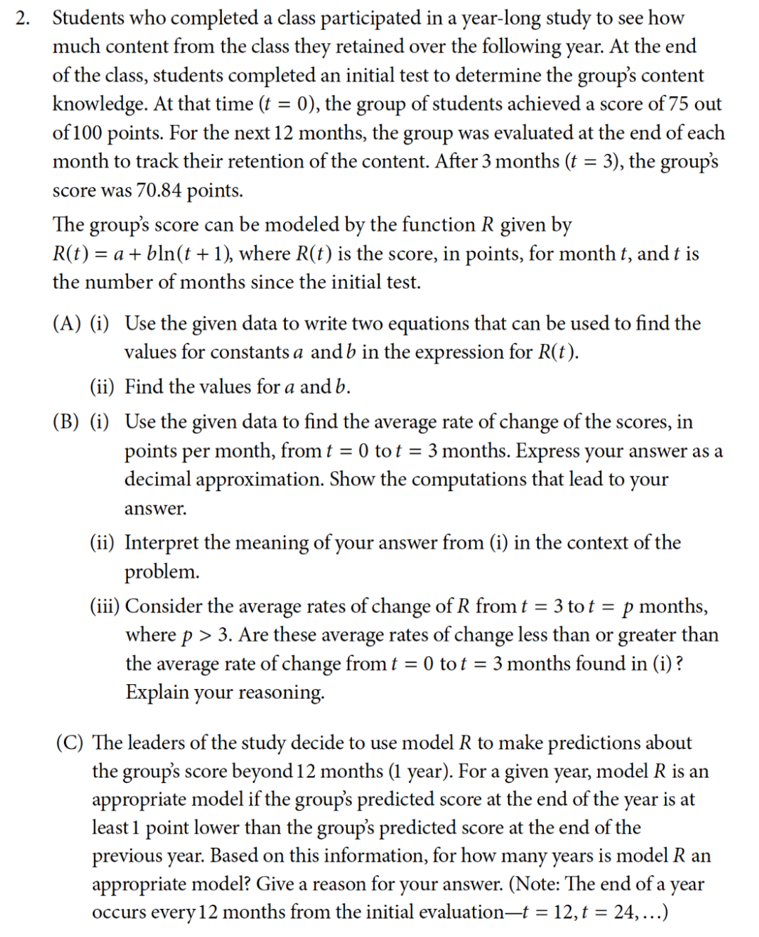 英文门槛上,学习预备微积分或者微积分都没有对英文能力太高的要求。从读题难度来看,Precalculus略高于CalculusAB/BC,下图举例一道对英语要求较高的简答题(来自官方样题,每道题15分钟时间作答),想在明年大考中搞定这类长题干,建议托福冲70分+努力,同时备考阶段要多沉浸式刷题练题、适应读题要求。