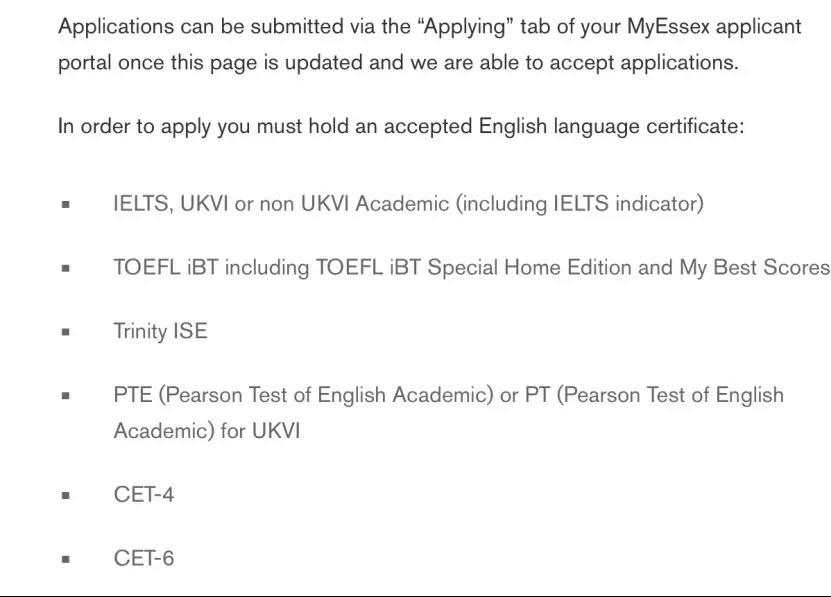 埃塞克斯大学综合科研实力在英国名列前茅,其接受四六级成绩,允许学生用于入读语言课、本科课程、硕士课程。