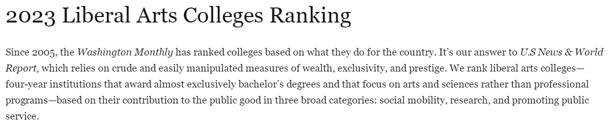 新东方在线托福整理了2024qs世界大学排名、usnews世界大学排名、usnews美国大学排名、泰晤士世界大学排名等世界大学排名,今天带来的是《华盛顿月刊》2023年美国文理学院排名一览表,希望对大家的选校有所帮助!