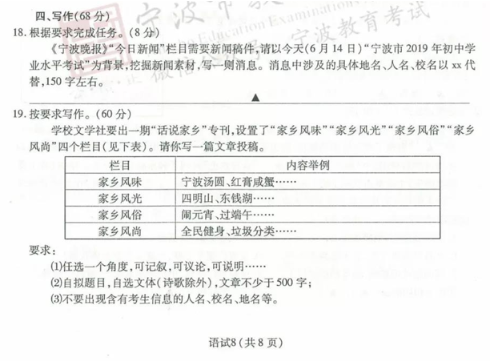 新东方在线中考网整理了《2019浙江宁波中考作文题目:“话说家乡”相关材料作文》,供同学们和家长参考。